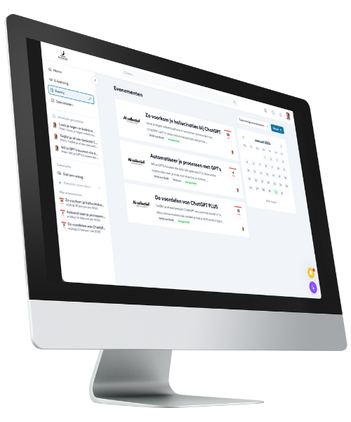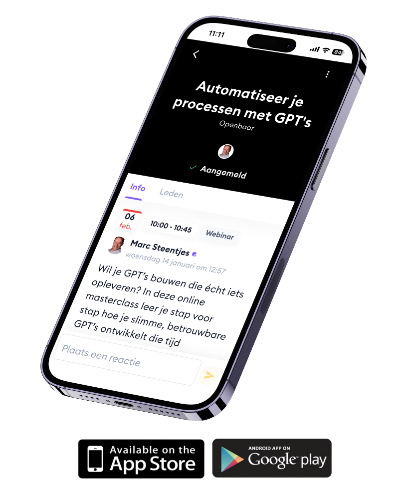 Het AI Platform waar organisaties en AI-specialisten samen werken aan concrete toepassingen. Je krijgt toegang tot een actief AI Platform waar dagelijks kennis, ervaringen en werkende oplossingen worden gedeeld.